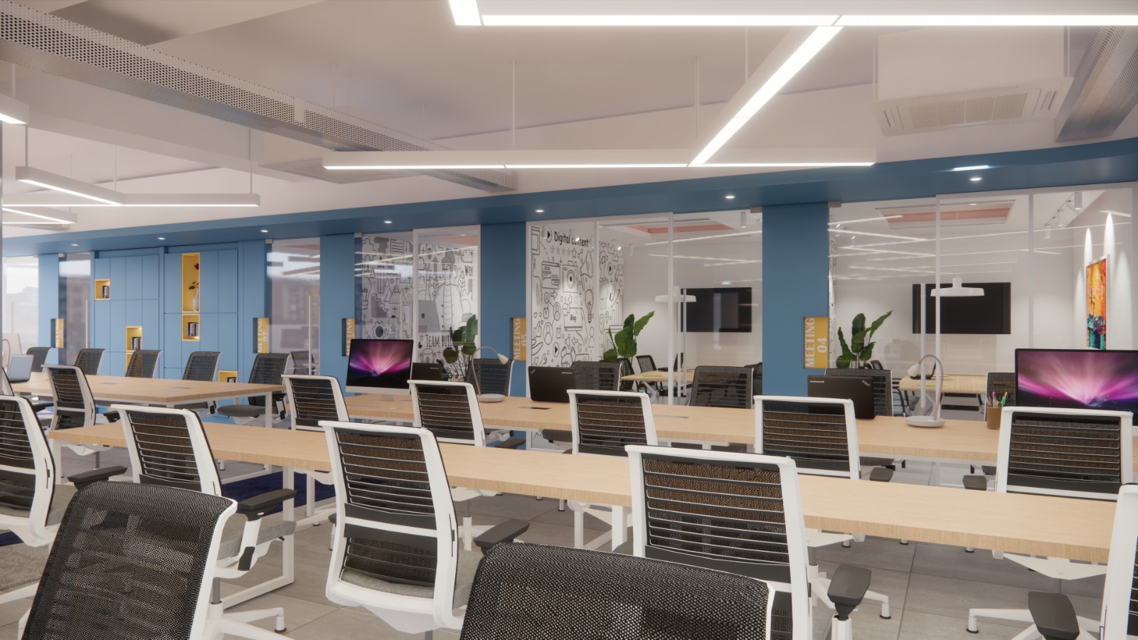 This section highlights the core functional areas of the IT office. We have implemented high-tech integrated cable management and ergonomic furniture solutions designed to sustain long-hour development cycles while maintaining a sleek, futuristic aesthetic.
